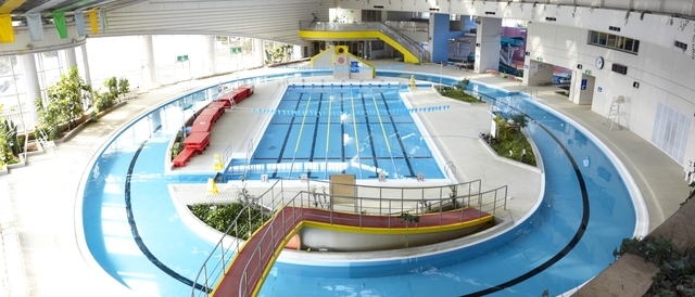プールには、25メートル×5コースのプール、流水プール、幼児プール、障害者用プール、ジャグジー、採暖室があり、充実しています。
