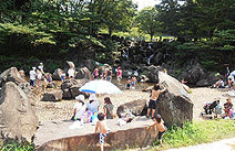 毎年の開放期間は7月中旬から10月下旬までとなっています。おむつをしている子どもは利用できないのでご注意ください。岩は滑りやすいので、サンダル等を履いて遊んでくださいね。