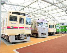野外には京王電鉄の本物の車両も展示されており、まさに本物に触れることができる環境です。9000系のミニ電車に乗ることもできますよ。