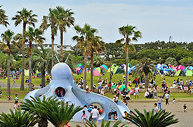 こんなに充実した施設なのに入園料は無料です。レジャーシートやテントを広げてのんびりとピクニックを楽しむ家族連れでにぎわいます。