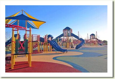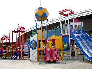遊具だけでなく、スポーツも楽しめる広大な公園
