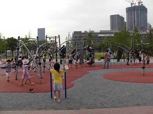 出典:www.asobi-map.com広大な芝生広場と、他では見れないデザインのカラフルな遊具たちが盛だくさん!各線豊洲駅から徒歩3分ほどで到着します。