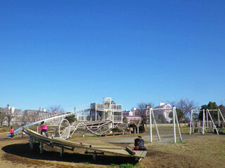 多くの施設はありませんが、自然がふんだんに見られる公園として有名な公園です。この一角にアスレチック広場があります。この広場の芝すべりがとにかく素晴らしい。