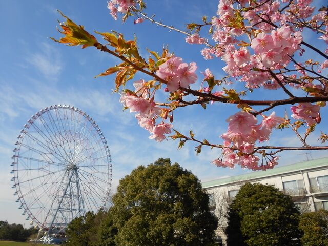 桜並木は水と緑のプロムナード(南エリア)に沿っていて、3月は大島桜4月は染井吉野など数種類が植えられているので長く楽しむことができます。