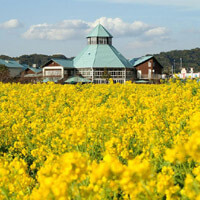また、春頃には枇杷倶楽部の前には、東京ドームがまるごと入る広さの南房総最大の巨大な菜の花畑が現れます。一面黄色に染まってた花畑は、黄色い絨毯を引いたよう!香りも素晴らしく、春を思いっきり感じる事が出来ます。
