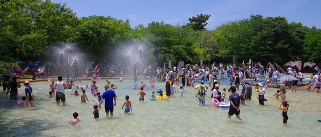 夏には、じゃぶじゃぶ池や流れる水と一緒に滑る滑り台など、水遊びも楽しめますよ。恐竜の形をした大きな滑り台も子どもたちに大人気です。恐竜のお腹から入って、背中を勢いよく滑る恐竜の滑り台は、格別に楽しそうです。