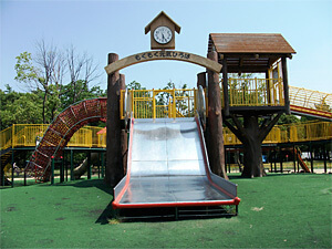 巨大滑り台などのまた違ったアスレチックが楽しめます。夏には緑地内にある「ちかくの森」の噴水や小川で軽く涼むこともできますよ。