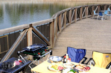 池と緑の木々が美しい公園で楽しむバーベキュー!