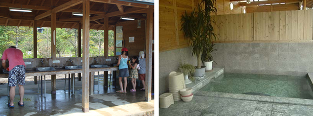 共有スペースには、露天風呂やシャワーの施設と、ワンちゃん連れにはうれしいドッグラン。 また、夏季のみですが、お子様用のじゃぶじゃぶ池も利用できます。