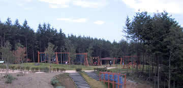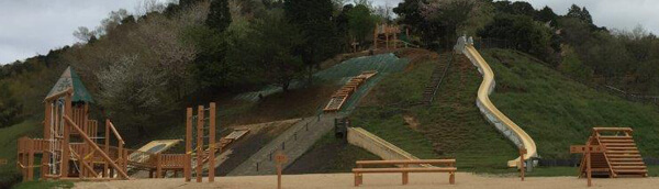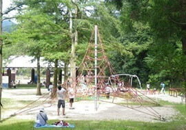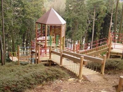 緑に囲まれた中にある幼児向き遊具・アスレチック