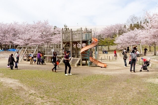 その他スプリング遊具やブランコなどもあるので、幅広い年齢の子どもたちが遊べます。春にはこの広場に300本の桜が咲きます。