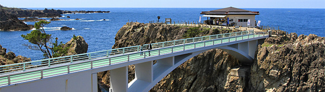 園内には全長54mの橋や、珍しいイカの遊泳が見られる水族館などがあったり、子どもが遊べるアスレチック施設などもあります。大人3人まで乗れるたらい舟体験もできたり、名物のサザエの壺焼きや焼きイカも食べれるなど、景色に遊びに食べ物に家族で十分満喫できる場所です。
