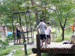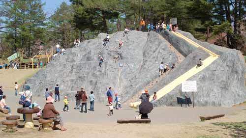 また、「子供冒険広場」には本格的なフィールドアスレチックもあり、小学校高学年くらいまで楽しめます。崖登りができる遊具は珍しく、本格的な仕様に子ども達も大喜びですよ。