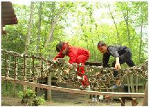 園内では、ウッディ感覚のキャビンでの宿泊もできますし、テントを張ってキャンプをすることも可能。フィールドアスレチックには約20アイテムのコースがあり、大人も充分楽しめる充実っぷり。