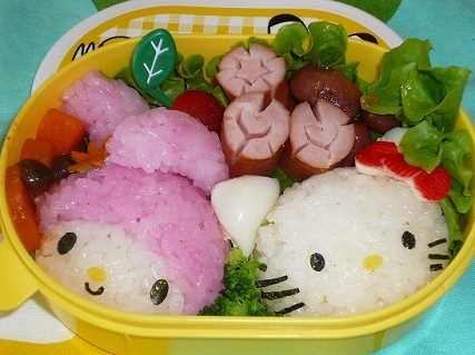 ウィンナにハートの模様をつけてボイルしたり、人参を花型に抜いたりと、キャラに合ったおかずの工夫をすると尚良いですね。