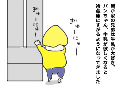 2歳になり、こっちが言っている内容が分かるはずなのにそれでも牛乳を諦めないパンちゃん・・・。めげずに・・・