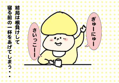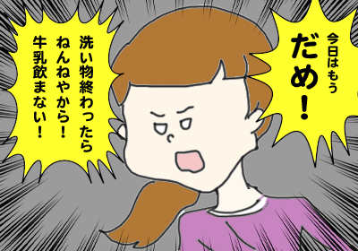 声も大きいし、妥協するまで延々泣き続ける・・・これがチョコレートとかなら、寝る前だし断固ムリ!!で通すんだけど・・・牛乳なだけに・・・