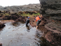潮が引いた断崖の海岸を攻め、海の中を覗き込んで獲物を狙う「見釣り」にチャレンジ。