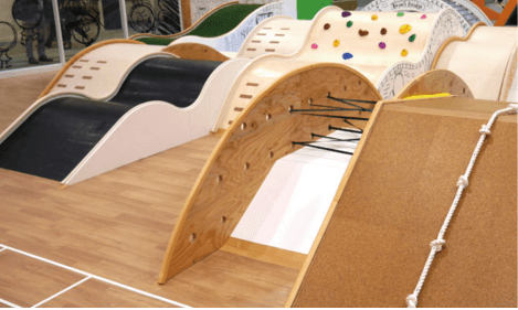 木やゴムなどでできた丘を登れる「くねくねタウン」や人工芝の「のびのび原っぱ」など、ほかにはないユニークな施設がある室内遊園地です。