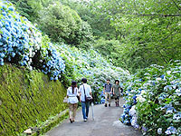駅から山頂へのハイキングコースを行くと、珍しいあじさいを見ることが出来ます。見ごろは6月中旬から7月です。