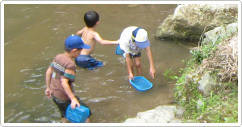 施設内に引き込んだ支流では川魚のつかみ取りができ、お子さんでも自分の手で魚を獲ることができます。