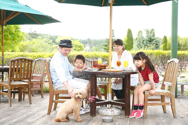 ワンちゃんをレンタルしたら、一緒に園内をお散歩。リードをつけたワンちゃんと歩く経験にお子さんも大喜びすること間違いなし!