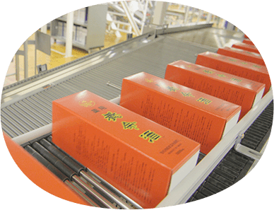 30分の見学コースは明るいロビーから始まり、ホールの大きなスクリーンで養命酒の製造過程などの映像をみます。続いて、瓶詰め~箱詰めまでのラインをガラス越しにガイドさんと見た後は、お待ちかねの試飲タイムです。