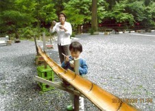 名古屋より中央自動車道に乗って道神坂PAから馬籠峠方面に向かって見えてくるのが馬籠宿。馬籠観光案内所より約100mの長い竹を使った流しそうめんを毎年夏に行っています。