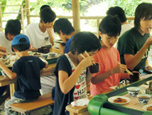 やはり流しそうめんは水が命。きれいな水が生まれる大自然の中でふるまわれる流しそうめんはシンプルながらも格別のおいしさです。