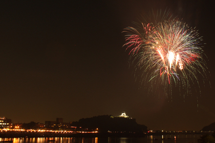 木曽川の河畔一帯を舞台に行われる花火大会が、犬山市の『日本ライン夏祭り納涼花火大会』です。例年20万人もの人出を迎え、出店する屋台は200にも及ぶ大花火大会です。