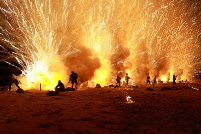 それも一風変わっていて、なんとロケット花火を打ち上げるというのです。その数なんと約70,000発(2014年度)。高鳴る笛と光のシャワーは感動を招くほどの大迫力です。
