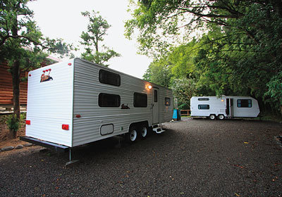 緑豊かなこちらのキャンプ場では、整地されたキャンプサイトはもちろんのこと、シャワーやトイレ完備のトレーラーハウス、キャンピングカーなどに泊まることができます。とても珍しい、貴重な体験ができますよ!