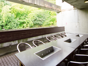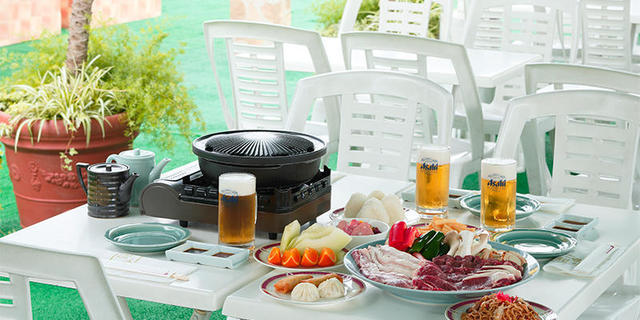3~11月の期間限定ですが、レストランのバーベキューテラスでは手ぶらでバーベキューが楽しめます。全50席、雨天対応席も30席あるので雨でも安心。面倒な準備、片付けも必要なし、飲み放題もつけることができるのがうれしいですね。