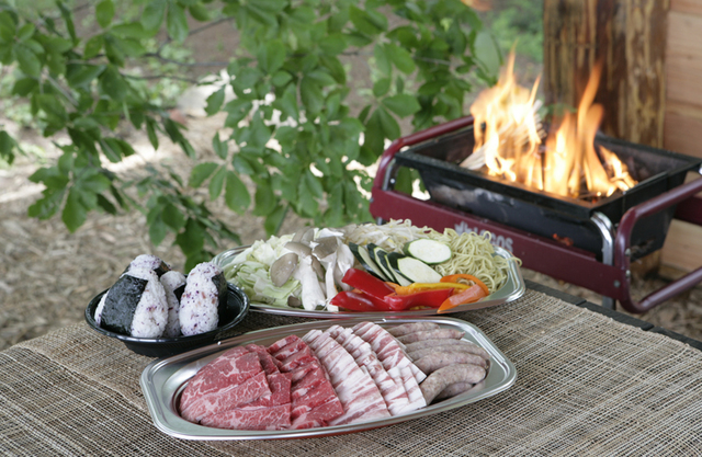 バーベキュー用品は持ち込みも可能ですが、手ぶらセットもあるので気軽にバーベキューができます。