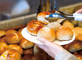 バケットの魅力はなんといっても焼きたてパンが食べ放題という事。お店で焼いているので、パンのいい香りでいっぱいです。