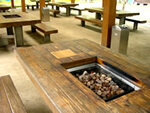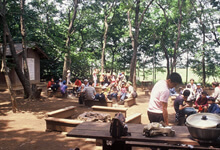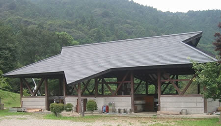 ベンチ付きの炉は屋根つきなので雨避け、日よけになって便利です。たっぷり遊んでお腹をすかせた子どもはすぐに食事をしたくなるものです。