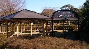 バーベキュー広場は屋根付きの区画で釜戸の両サイドにベンチがあり、6~8人で楽しむことができます。皆でわいわいするのにピッタリなので合コンにもおすすめですね。