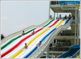 出典:www.parks.or.jp加須はなさき水上公園プールのスライダーは、直線スライダー1種類と、曲線スライダーが2種類(全長103mと、63m)あります。(対象年齢:小学生以上)