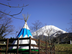 テントサイトでは、アメリカインディアンが住居として用いていた「ティピ」に泊まることができ、デザインは富士山をイメージした見た目に楽しいのが特徴です。