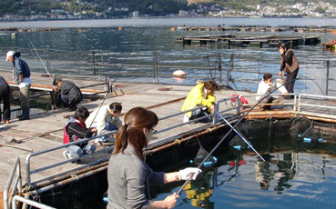 釣り堀といっても、自然の入り江を仕切った釣り堀がオススメ。ほとんど海!というこの釣り堀には、マダイやイワシ、アジなどが釣れます。