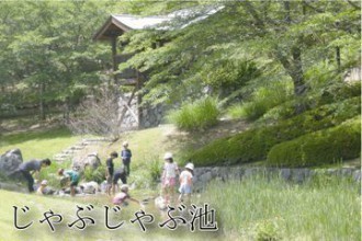 ジャブ池もあるので夏場には水遊びも楽しめます。南側にある「芝生の広場・森の遊び場」には木製のアスレチックと少し大きい子どもでも楽しめます。