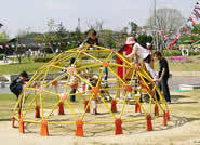 園内には「こどもの広場」があり、こちらには45メートルのジャイアントスライダーやカラフルなアスレチック遊具があって体を動かしてのびのびと遊べます。