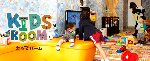 広々としたキッズルームにはおもちゃやDVDがあります。ベビーベッドもあるので、寝ている赤ちゃんもゆっくり過ごせますよ。