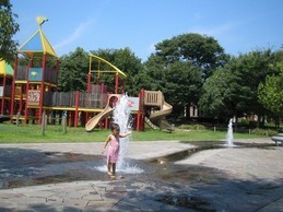 センターゾーンにあるカスケード広場や噴水の周りには、夏には水遊びをする子ども達でいっぱいになります。