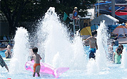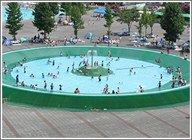 ちびっこプールは水深0.6mなので、幼稚園から小学生向けです。中央にある噴水を楽しめますよ。