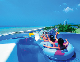 全長1kmもの広大な敷地内には、造波プールや流水プール、子どもプールやウォータースライダーをはじめとする9つのプールがあり、一日中いても飽きることがありません!