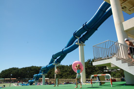 出典:www.kanagawa-park.or.jp辻堂海浜公園 ジャンボプールには高さ10mから一気に滑り降りるスリル満点のウォータースライダーや落差3mの滑り台がある滝のプールが人気です。