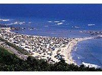 ビーチからは大島など伊豆七島を一望することができ、スケールの大きさを感じさせる海水浴場です。海水浴シーズンは首都圏はじめ多くの地域から観光客が訪れとてもにぎわいます。