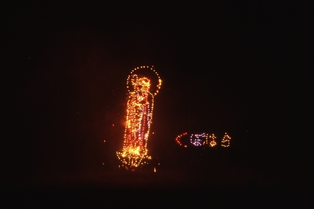 お地蔵さんの姿が夜空に花火で浮かぶ