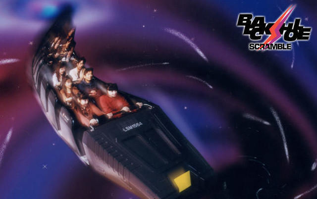 「ブラックホールスクランブル」は絶叫マシーンの要素も強いアトラクションで、漆黒のブラックホールの中を高速宇宙船で疾走するという内容になっています。